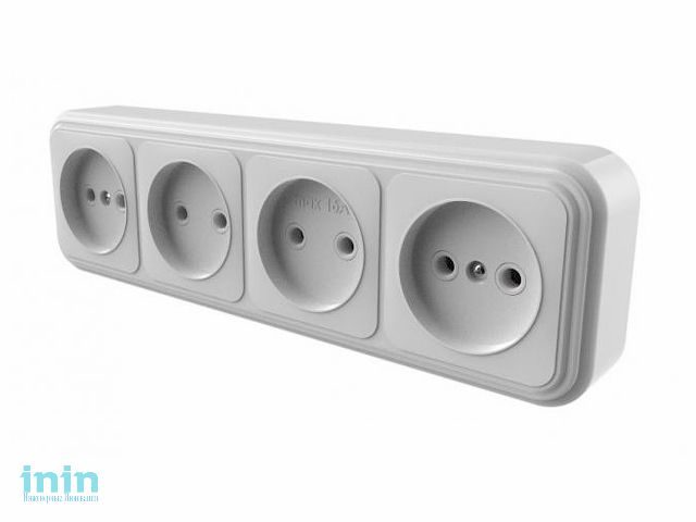 Розетка 4-ая (открытая, б/з) белая, Стандарт, Юпитер (RA16-464-Б) (ЮПИТЕР)