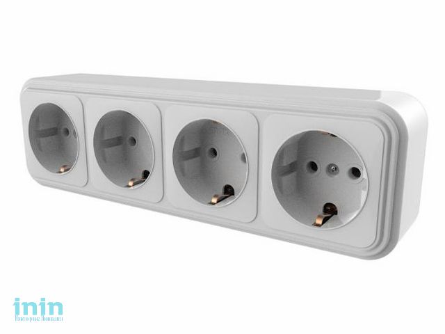 Розетка 4-ая (открытая, с/з) белая, Стандарт, Юпитер (RA16-466-Б) (ЮПИТЕР)