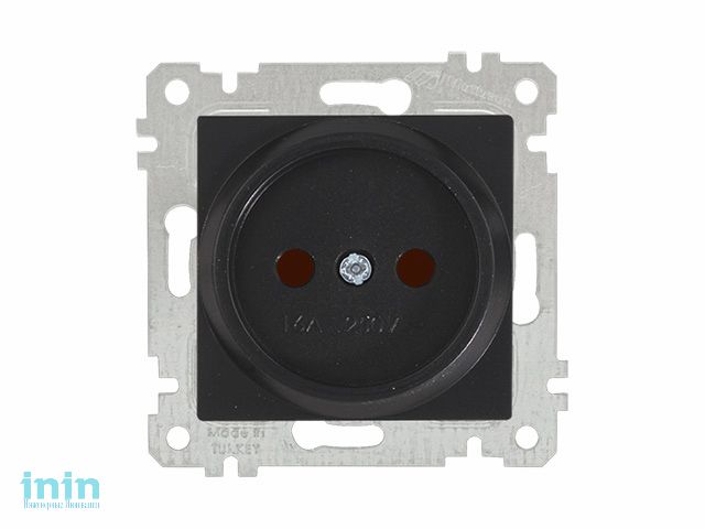 Розетка 1-ая (скрытая, без рамки, б/з, шторки) черная, RITA, MUTLUSAN (16 A, 250 V, IP 20)