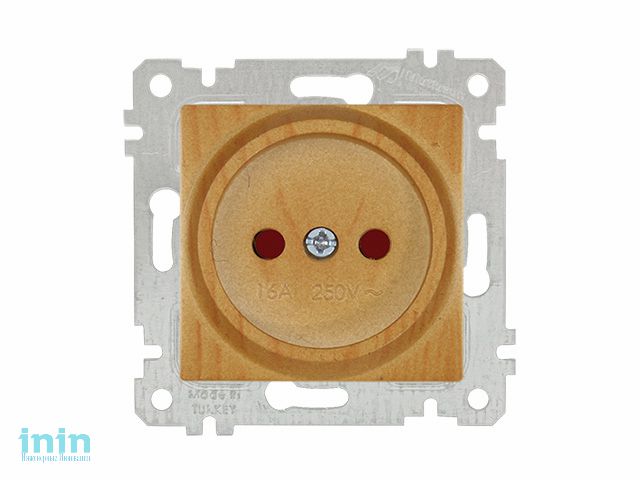 Розетка 1-ая (скрытая, без рамки, б/з, шторки) дуб, RITA, MUTLUSAN (16 A, 250 V, IP 20)