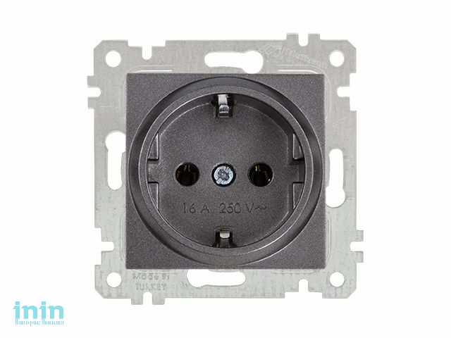 Розетка 1-ая (скрытая, без рамки, с/з) дымчатая, RITA, MUTLUSAN (16 A, 250 V, IP 20)
