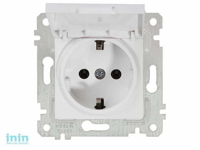 Розетка 1-ая (скрытая, без рамки, с/з, с крышкой) белая, RITA, MUTLUSAN (16 A, 250 V, IP 20)