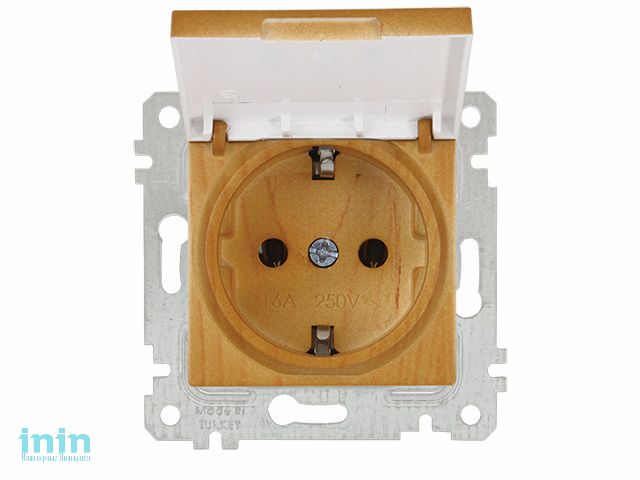 Розетка 1-ая (скрытая, без рамки, с/з, с крышкой) дуб, RITA, MUTLUSAN (16 A, 250 V, IP 20)