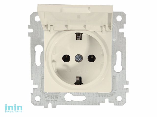 Розетка 1-ая (скрытая, без рамки, с/з, с крышкой) кремовая, RITA, MUTLUSAN (16 A, 250 V, IP 20)
