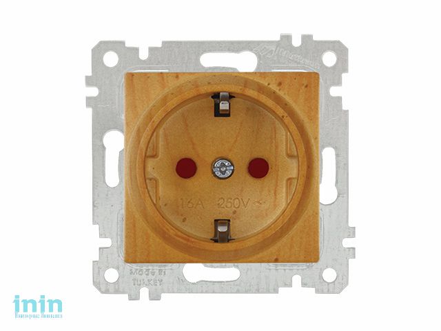 Розетка 1-ая (скрытая, без рамки, с/з, шторки) дуб, RITA, MUTLUSAN (16 A, 250 V, IP 20)