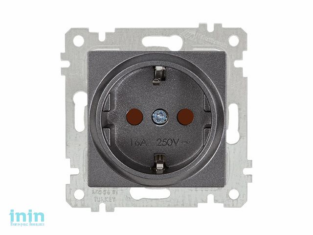 Розетка 1-ая (скрытая, без рамки, с/з, шторки) дымчатая, RITA, MUTLUSAN (16 A, 250 V, IP 20)