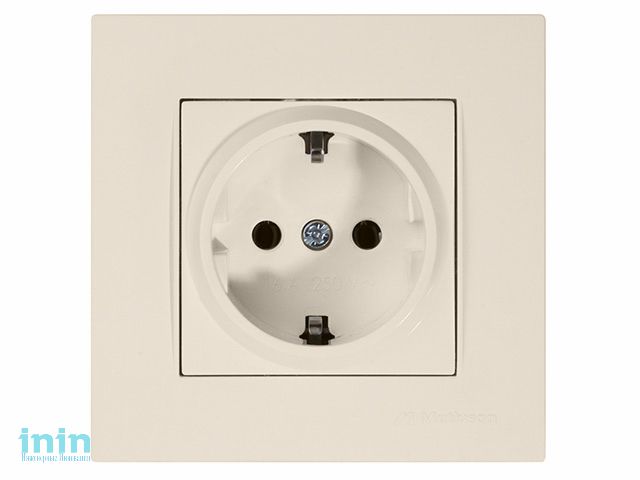 Розетка 1-ая (скрытая, с/з) кремовая, RITA, MUTLUSAN (16 A, 250 V, IP 20)