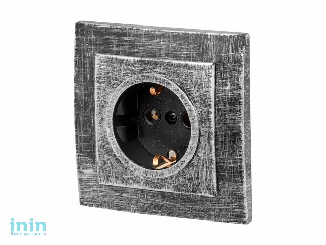 Розетка 1-ая (скрытая, с/з) серебро, Стандарт, Юпитер (RS 16-133 ЧС) (ЮПИТЕР)