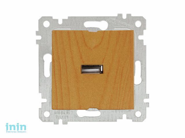 Розетка 1-ая USB (скрытая, без рамки) дуб, RITA, MUTLUSAN (USB charge, 5V-2.1A)