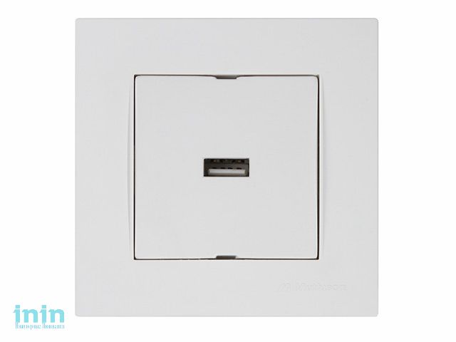Розетка 1-ая USB (скрытая, горизонт.) белая, RITA, MUTLUSAN (USB charge, 5V-2.1A)
