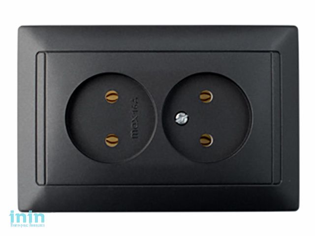 Розетка 2-ая (скрытая, б/з) графит, Стиль ГРАФИТ, Bylectrica (Розетка штепсельная двухместная скрытой установки Гарантийный срок:24 месяца)