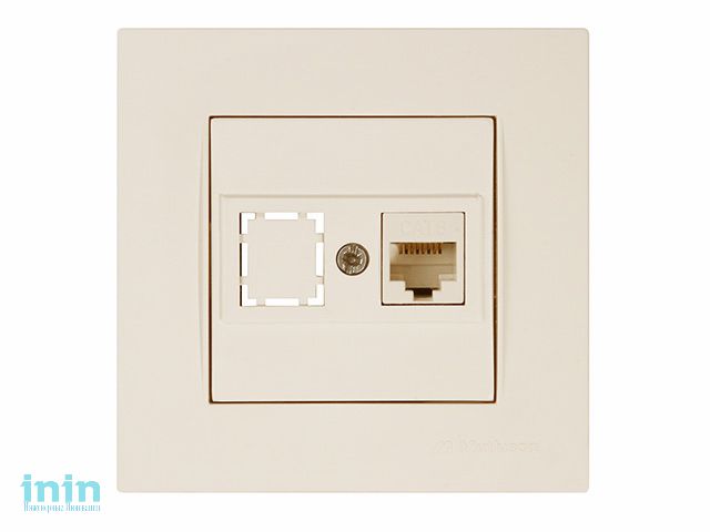 Розетка компьютерная 1xRJ45 (Cat6, скрытая) кремовая, RITA, MUTLUSAN