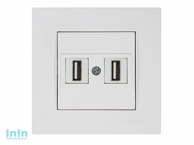 Розетка компьютерная 2хUSB (скрытая) белая, RITA, MUTLUSAN (2xUSB 2.0 port, highspeed, 480Mps, 60Mb/sec)