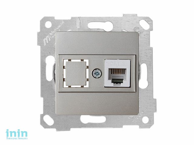 Розетка телефонная 1хRJ12 (скрытая, без рамки) титан, RITA, MUTLUSAN