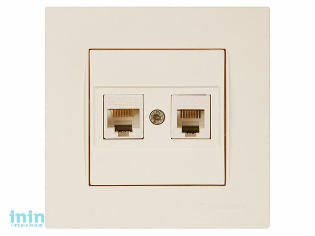 Розетка телефонная + компьютерная (RJ12+Cat5e, скрытая) кремовая, RITA, MUTLUSAN