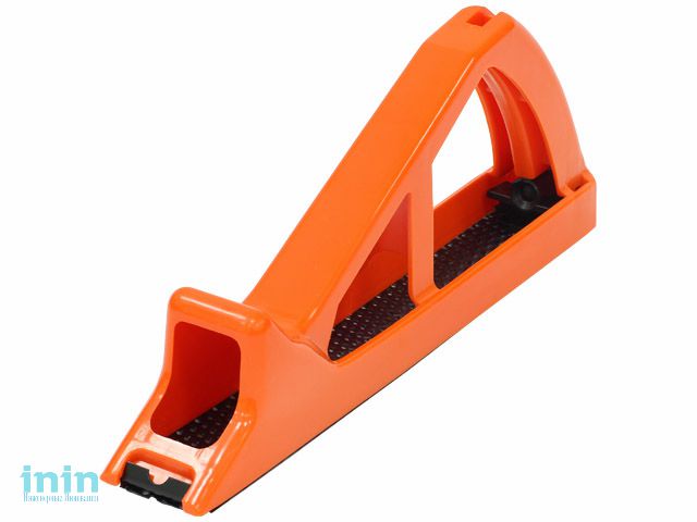 Обдирочный рубанок изготовлен из пластмассы. Инструмент имеет крепления, позволяющие быстро и легко заменять использованные рабочие полотна. Обдирочный рубанок используется при обработке гипсокартона, пластмасс, фибергласа и других легкообрабатываемых материалов. Сменная сетка - арт. ST1036-25.