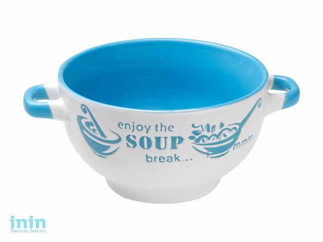 Супница керамическая, 140 мм, круглая, серия Окрошка, бело-голубая, PERFECTO LINEA (объем 550 мл)