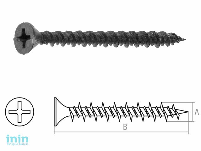 Стальные фосфатированные саморезы для крепления гипсоволоконных листов к металлическим профилям толщиной до 0,9 мм, шлиц Ph2.