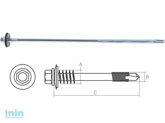 Саморез для сэндвич-панелей 6.3/5.5х280 мм цинк, шайба с прокл. STARFIX