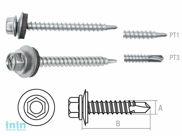 Используются для крепления кровельных и фасадных металлических листов к деревянным элементам (РТ1).