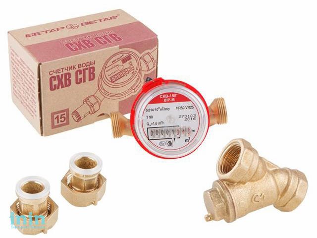 Счетчик для горячей воды СКВ-15/Г (комплект) РБ "ВIР-М" (В комплекте Фильтр грубой очистки, Узел присоединительный) (Эрготех)