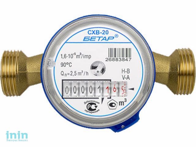 Счетчик для холодной воды СХВ-20 РФ "ВIР-М" (Нужно укомплектовать: Фильтр косой, Комплект монтажный или Узел присоединительный) (Бетар)