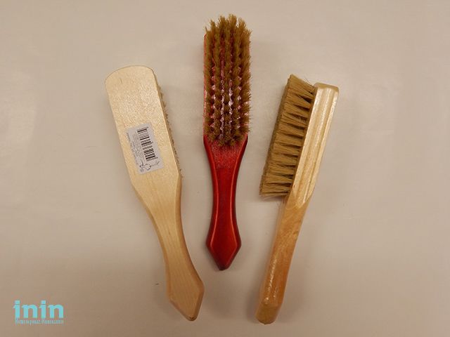 Щетки изготовлены из натуральной свиной щетины и дерева высокого качества, покрытые лаком цветным и бесцветным. Свиная щетина обладает необыкновенным качеством, она прекрасно и без повреждений чистит поверхность кожи, шерсти, ткани.