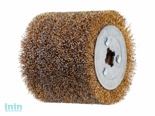 Щетка стальная с латунным покрытием 100х120 мм 0,5 мм WORTEX (диаметр 120 мм, ширина 100 мм, посадочный диаметр 19 мм, проволока 0,5 мм)