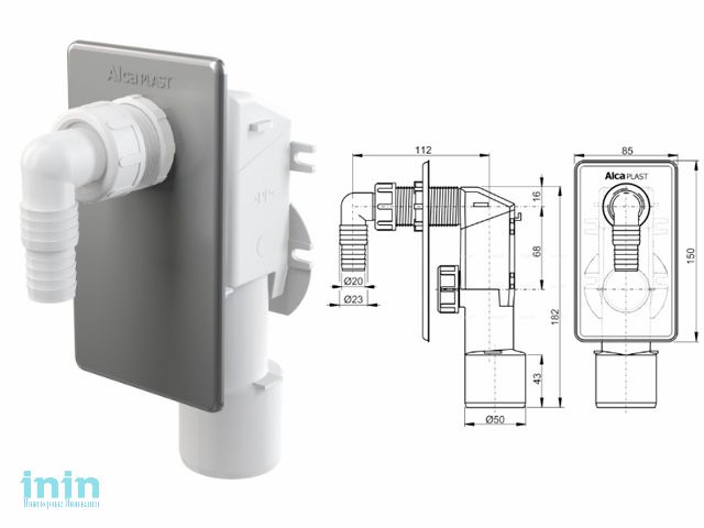 Сифон для стиральной машины под штукатурку хромированный, Alcaplast (Сифон для стиральной машины под штукатурку хромированный,)