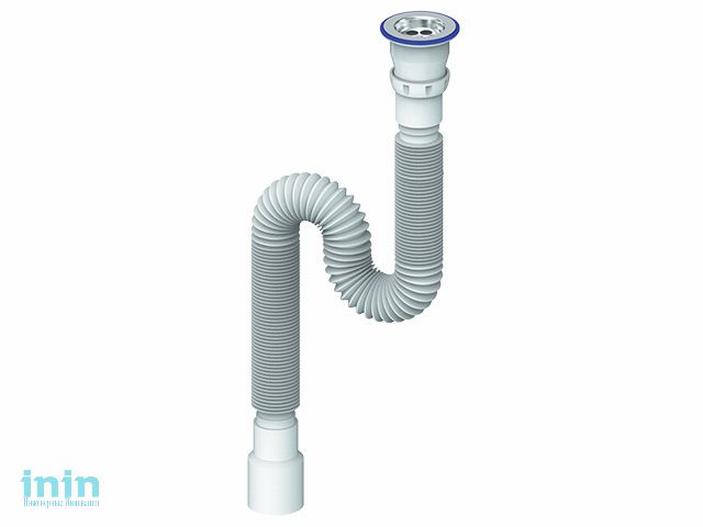 Cифон гофрированный 1200 мм с прикручивающимся выпуском 1 1/2" (40) с винтом 6х70 с нержавеющей чашкой 40х40/50