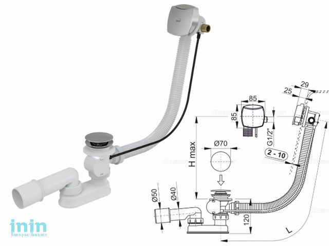 Сифон для ванны с напуском воды через перелив, металл - пластик, Alcaplast (Сифон для ванны AlcaPlast A564CRM1)