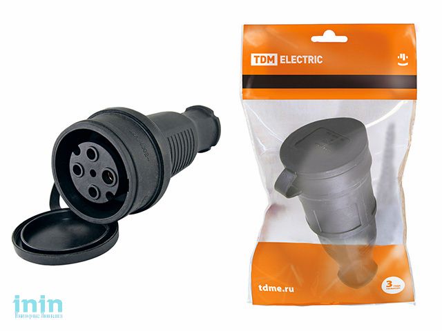 Разъем с заглушкой каучук 3Р+РЕ 32А 380В IP44 TDM