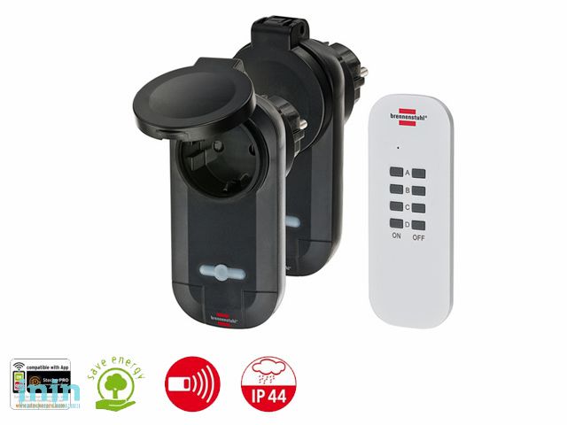 Комплект поставки: 1 пульт дистанционного управления на 2 беспроводных розетки с защитой IP44;