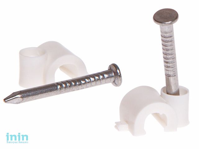 Скоба для крепления круглого кабеля 8 мм белая, с гвоздем (50 шт в зип-локе) STARFIX