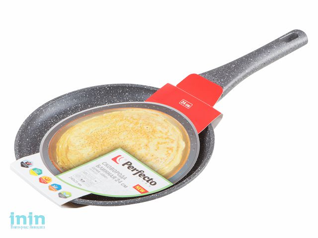 Имеет антипригарное трехслойное мраморное покрытие: один слой полимера обеспечивает устойчивость к царапинам, второй - прочность соединения антипригарного покрытия, третий - усиление антипригарных свойств при длительном использовании. Покрытие не вступает в реакцию с пищей, а потому абсолютно безвредно для человека- даже при попадании частичек в пищеварительный тракт.