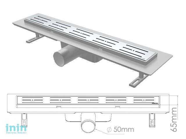 Сливной трап горизонтальный D 50, решетка нерж. с площадкой под плитку, 65х900мм, NOVA