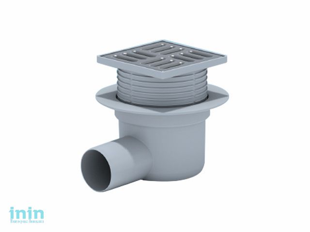 Сливной трап горизонтальный D 50, TA5602 решетка нерж. 100х100 мм, серый РосТурПласт (Трап пластиковый, решетка - нерж. сталь, 50 гор.)