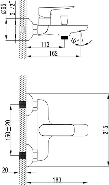 однорычажный смеситель для ванны и душа, монтаж на стену