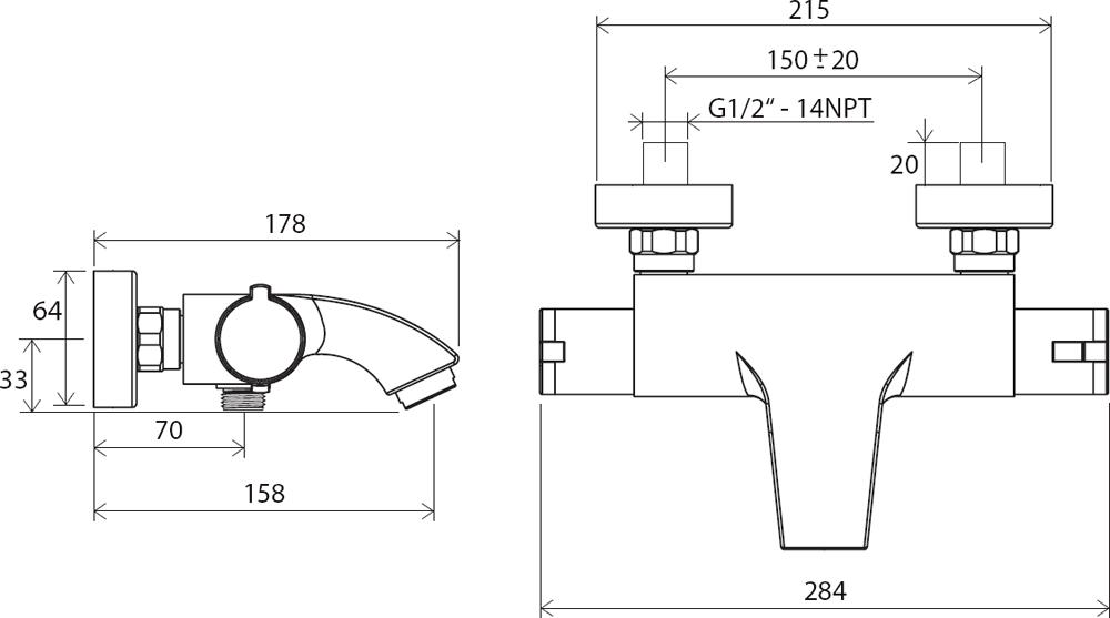 Настенный термостатический смеситель для ванны Ravak TE 082.00/150
