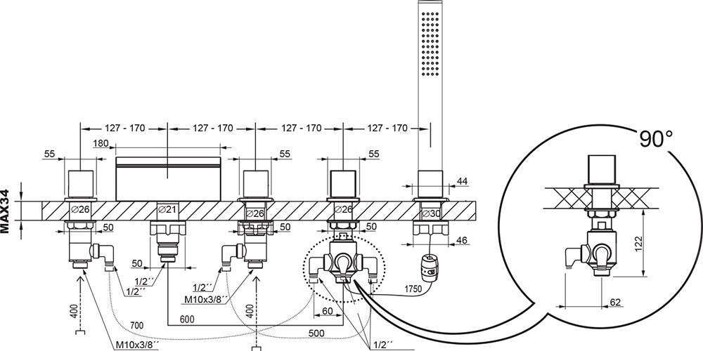 ВРЕЗНОЙ СМЕСИТЕЛЬ ДЛЯ ВАННЫ С ДУШЕМ RAVAK WF 025,00, X070060