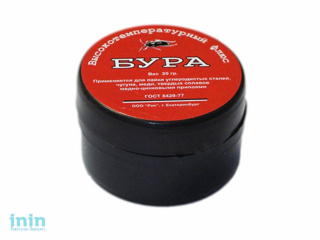 Бура для пайки применяется в качестве флюса при использовании серебряных или латунных припоев. Процесс пайки представляет собой создание неразъемных соединений, при этом применяются твердые припои или мягкие.