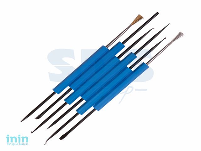 Набор для пайки (6 предметов) REXANT предназначен для монтажных и ремонтных работ с радиоэлементами на платах, в корпусах аппаратуры, в часовых механизмах и т. п. Используется в электронике, моделировании и ювелирном деле. Ручки из качественной пластмассы не растворяются в отмывочных жидкостях.