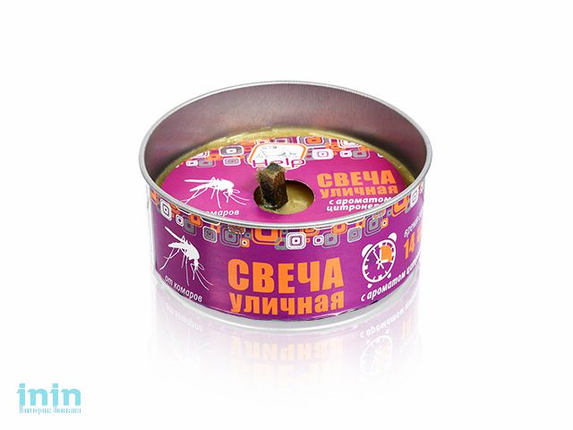 Уличная свеча с ароматом цитронеллы в жестяной банке - безопасный и эффективный защитный барьер от комаров. Идеально подходит для использования на даче, во время отдыха на природе.