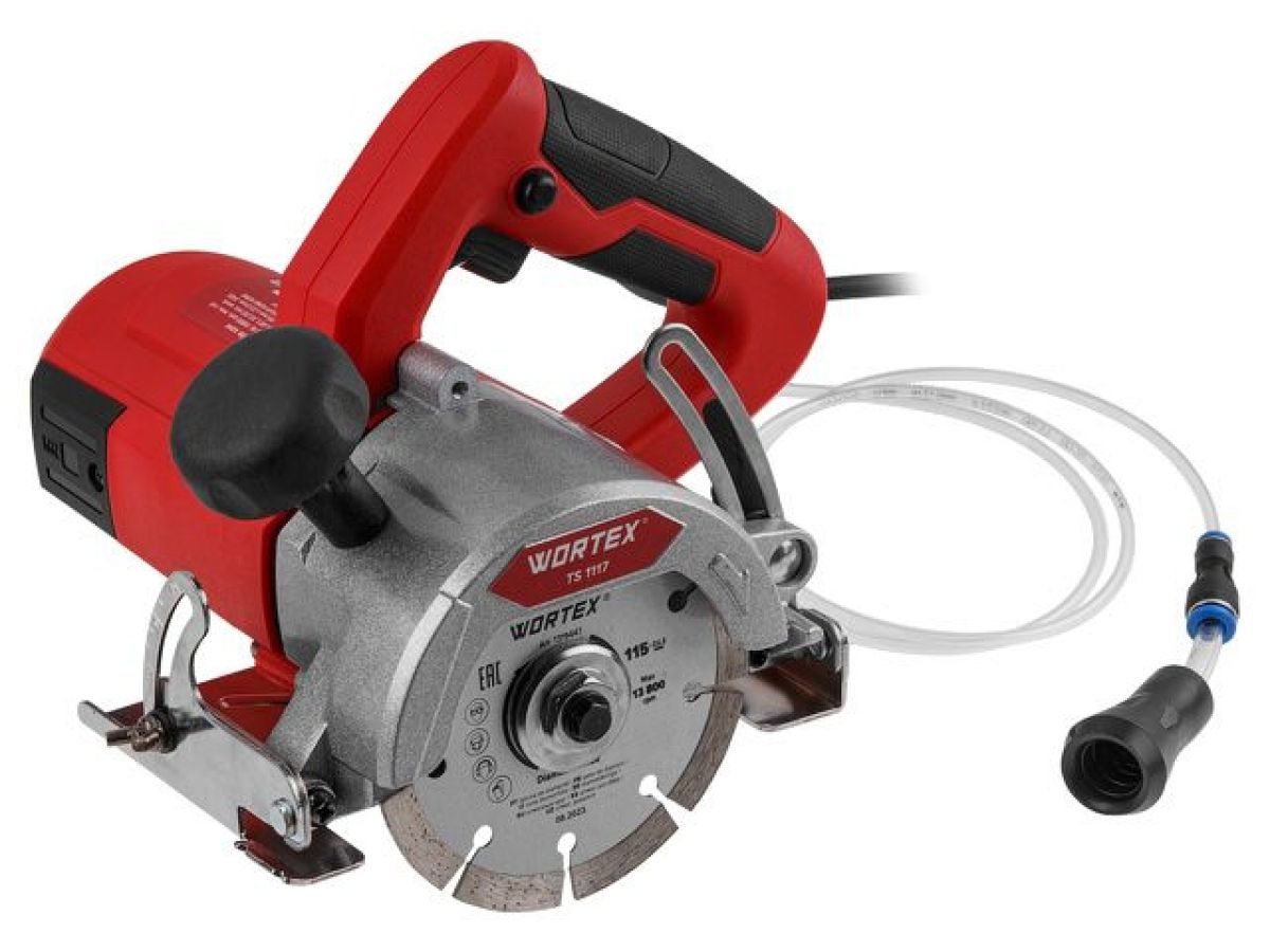 Плиткорез электрический WORTEX TS 1117 в кор. 1700 Вт, 115х22.2 мм, до 34 мм (13800 об/мин, сухой и мокрый рез, 3.4 кг)
