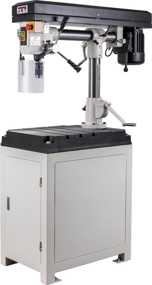 Jet JRD-387A — радиально-сверлильный станок промышленного класса, предназначенный для работы с любыми материалами (металл, древесина, пластики, композиты и т.п.). Имеет жесткую, прочную и массивную конструкцию, которая обеспечивает точность, отсутствие вибраций и долговечность. Поставляется в комплекте с металлической тумбой-подставкой, одновременно служащей вместительным отсеком для хранения принадлежностей и инструментов.