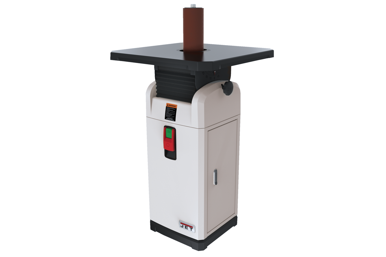 Стандартная комплектация включает в себя 10 шлифовальных шпинделей с диаметром от 6 до 100 миллиметров, а также кольцевые вставки в рабочий стол с круглым и овальным отверстием (для работы в наклонном положении стола). Расходный материал – абразивные гильзы – предлагаются со склада Jet в широком ассортименте.