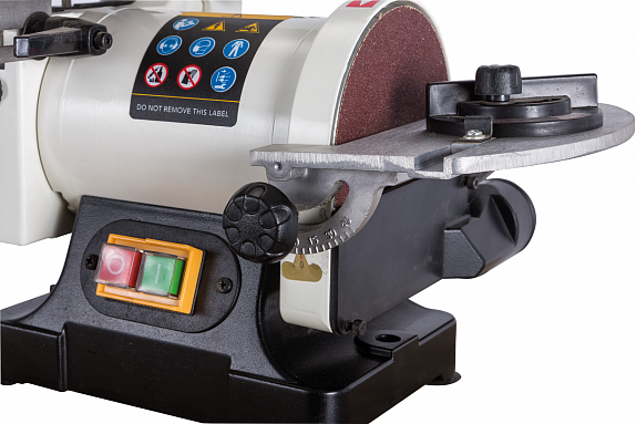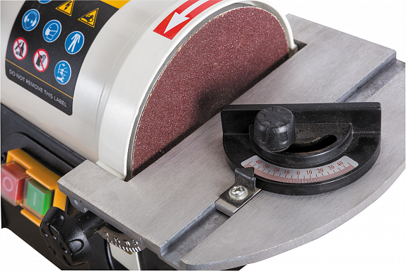 Дисково-шлифовальный узел оснащен тарелкой-подложкой к которой на «липучке» крепят абразивные листы, такие же, как на орбитальных шлифмашинах. Благодаря твердой опорной поверхности можно выравнивать плоскости, формировать грани и углы заготовок. Регулируемый опорный стол и подвижный угловой упор позволяют добиться высокой точности и повторяемости результата.