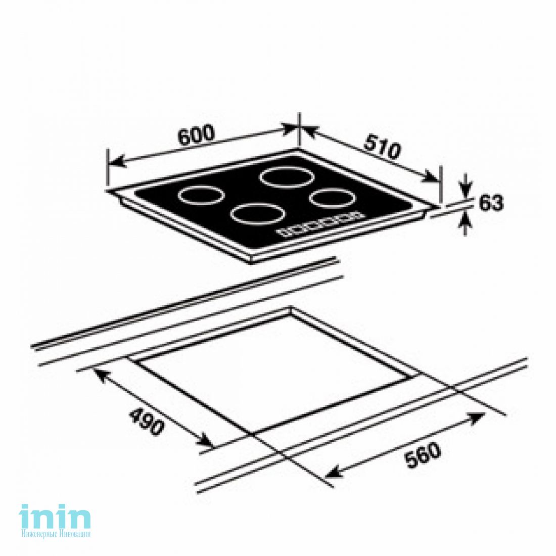Стеклокерамическая, сенсорная панель управления, с акустическим сигналом, без рамки, цифровое программирование времени приготовления до 99 мин., автоматика закипания, таймер, 3 зоны приготовления: 1 конфорка Ø 145 мм; 1 конфорка Ø 180 мм; 1 двухконтурная конфорка Ø 270/210 мм, индикаторы остаточного тепла, блокировка безопасности, макс. номинальная мощность: 5,4 кВт, размер 600*510 мм, вырез 560*490 мм