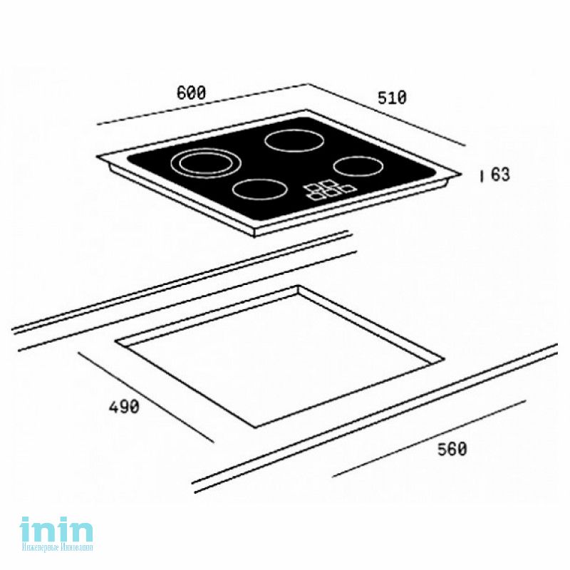 Стеклокерамическая варочная панель в стиле кантри с обрезанным краем, шелкография, передняя сенсорная панель управления, блокировка безопасности, цифровое программирование времени приготовления до 99 мин., автоматика закипания, самоотключение, индикаторы остаточного тепла, 4 конфорки High-Light: 2*145mm, 1*180mm; 1*210/180mm; максимальная потребляемая мощность: 6,2 кВт, размеры: 600 х 510 мм