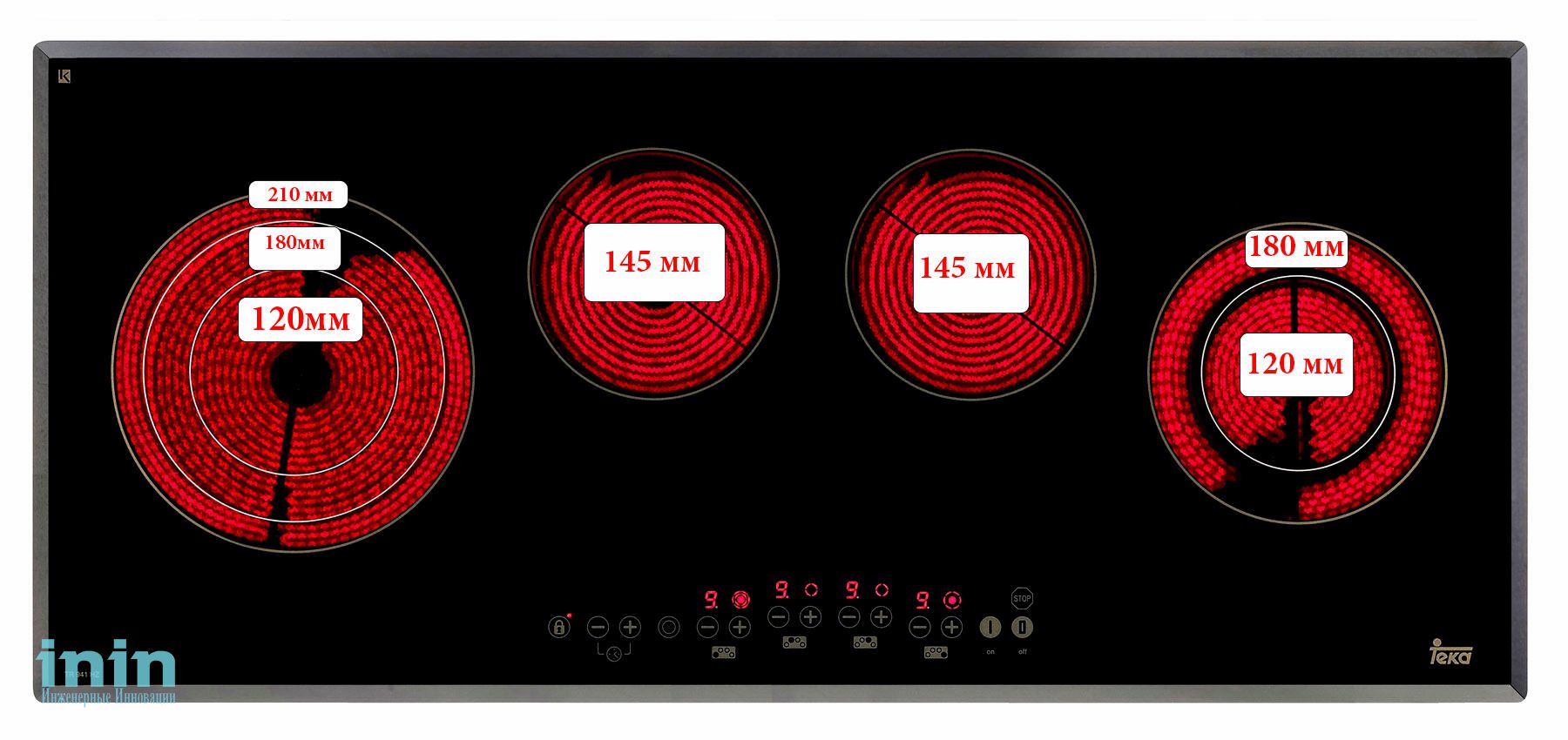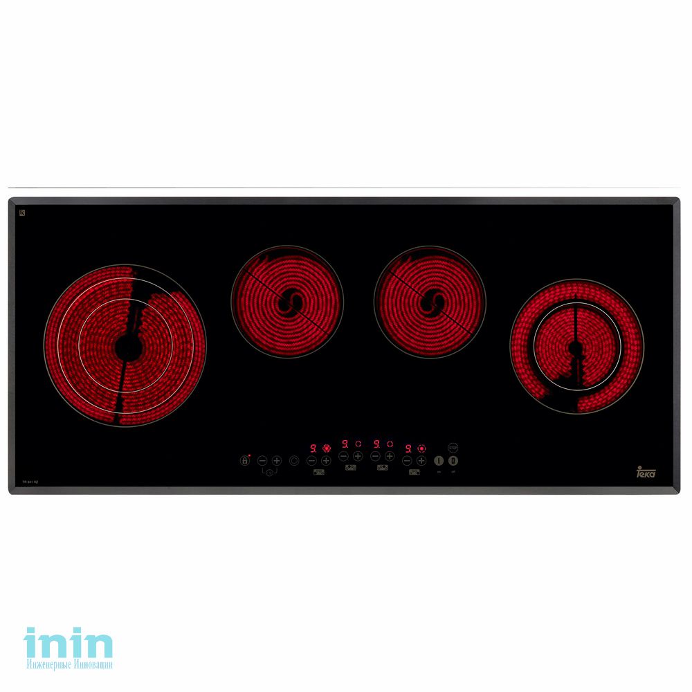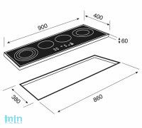 Стеклокерамическая варочная панель, сенсорная панель управления, фацетированное стекло, блокировка безопасности, функция хронометра со звуковым сигналом, функция Stop&Go (пауза), автоматика закипания, 4 зоны приготовления: 1 большая трёхконтурная конфорка high light (120/180/210 мм), 1 двухконтурная конфорка high light (120/180 мм), 2 конфорки high light (145 мм), индикаторы остаточного тепла,  максимальная потребляемая мощность: 6,4 кВт, размеры в мм: 900х400